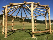 Ein Projekt von StrohNatur in Kooperation mit Alejandro Lopez (Strohbau, reziprokes Dach) und Georg Barthels (Zimmermeister).
