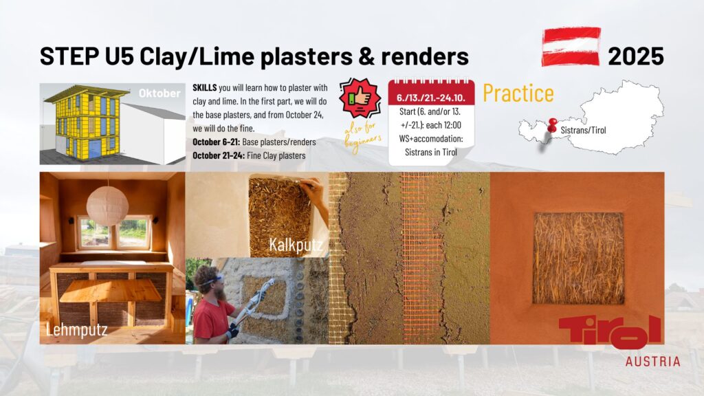 Oct 6 and/or – 13: Clay and lime plasters, starts Mo 12:00