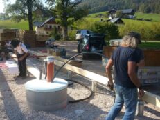 Galerie vom Bau und Befüllen der Bodenplatte: