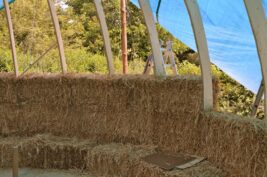 Straw bale dome in CUT-Technique built in a workshop in Velden am Wörthersee 2014 and with the participation of the owner-builders Trainer: Herbert Gruber, Erwin Schwarzmüller Carpenter: Snopje (SL)
