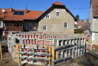 In the yard of a house-ensemble in Pulkau, Lower Austria, this new straw bale house was built in April/May 2017