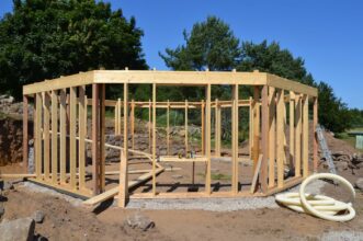 The timber post & beam construction was prefabricated at this 14-day workshop in the eco-village Ecotopia (Sweden). Straw bale infill was done with CUT-Technique by participants, as well as parts of the roof, reed stucco and the clay plaster