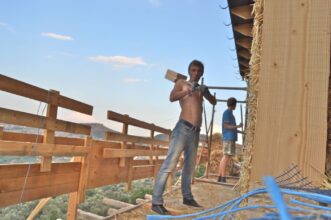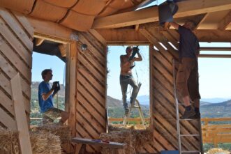 Strohballenhaus in den Psiloritis-Bergen Kretas. Die Eigentümer Annica und Nikos Patsakis betreiben dort eine Raki-Produktion, das Haus ist für 3 Wohneinheiten geplant.