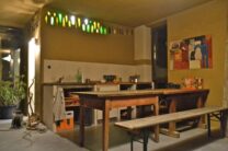Strohballen, Lehmputz, Kalk und Tadelakt sowie Holz sind die natürlichen Materialien in unserer Virtuiellen Baustelle in Ravelsbach (Gemeinschaftsküche). Im OG befindet sich unser Strohballen-Gewölbe mit Lehmputz, Flaschenwand und Jute-Teppich.